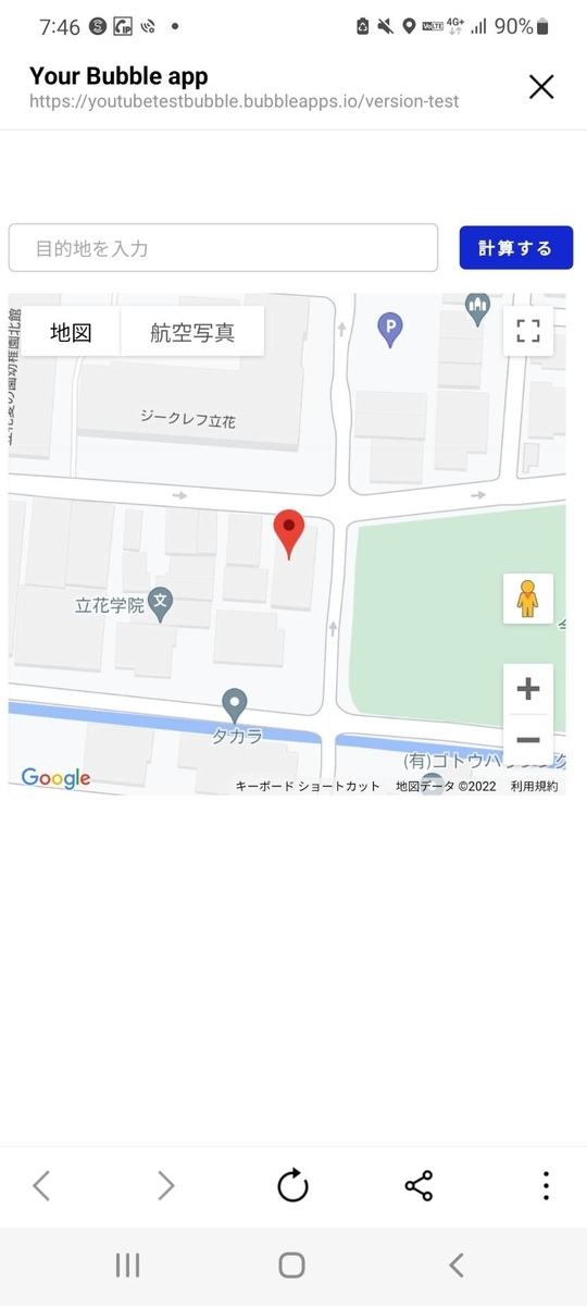 ではまず屋内で同じdocomoの回線でスマホを使って、bubbleで作成したアプリとGooglemapのアプリで現在地をそれぞれ取得し違いがあるか確認いたしました。